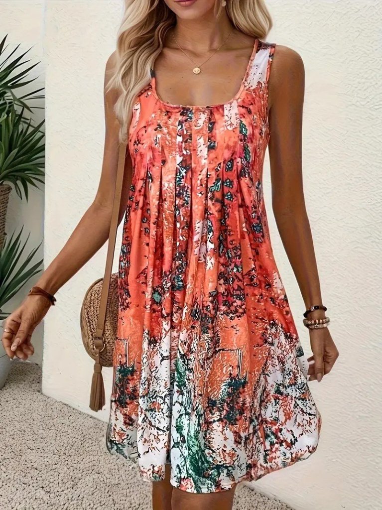 Kadın Sıfır Kollu Kare Yaka önden Pileli Salaş Süprem Elbise