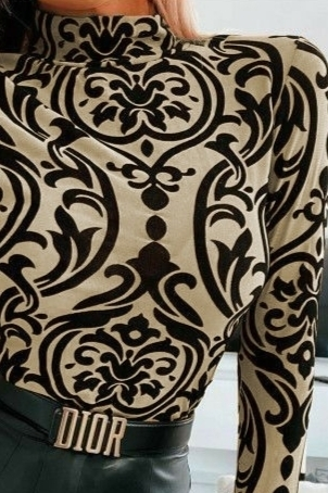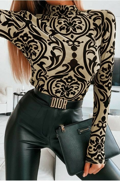 Kadın Uzun Kollu Balıkçı Yaka Desenli Sandy Bluz