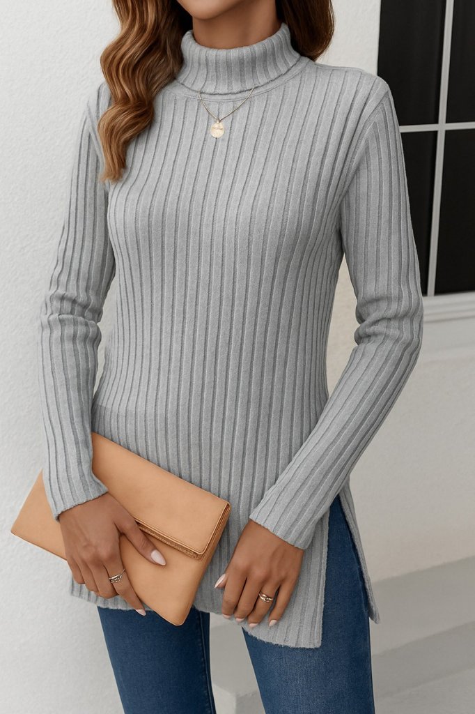Kadın Uzun Kollu Balıkçı Yaka Yandan Yırtmaçlı şardonlu Kaşkorse Bluz