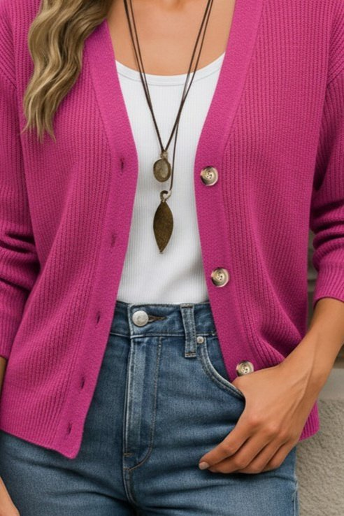 Kadın Uzun Kollu Düğme Detay Triko Hırka