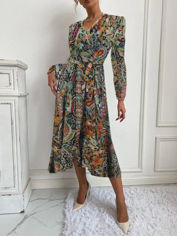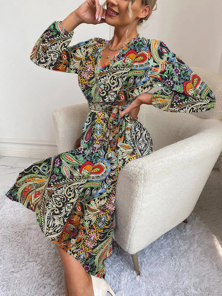 Kadın Uzun Kollu Kruvaze Yakalı Belden Kuşaklı Leopar