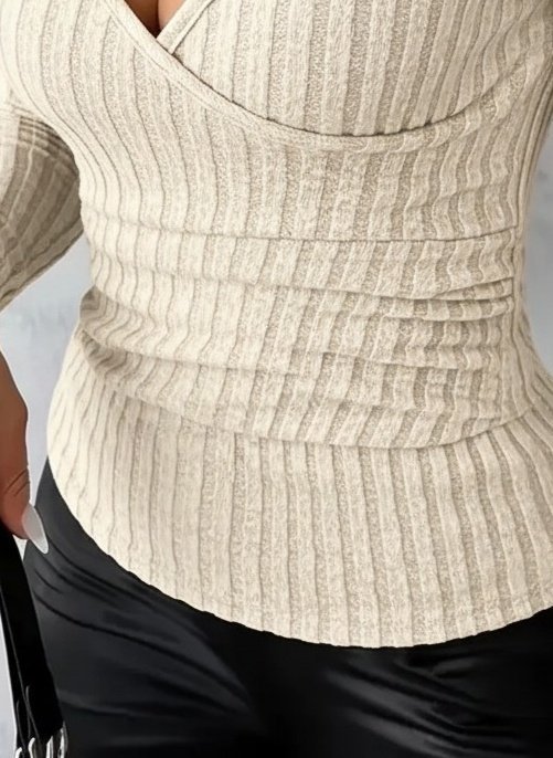 Kadın Uzun Kollu Kruvaze Yakalı Incili şardonlu Kaşkorse Bluz