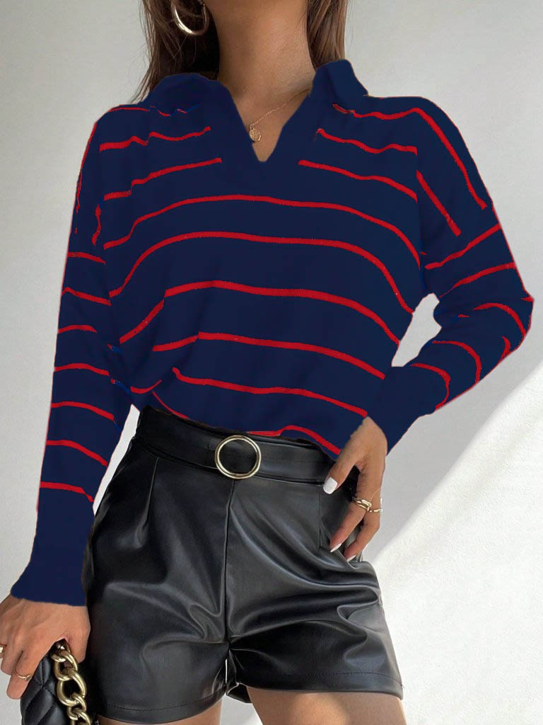 Kadın Uzun Kollu V Yaka çizgili Triko Bluz