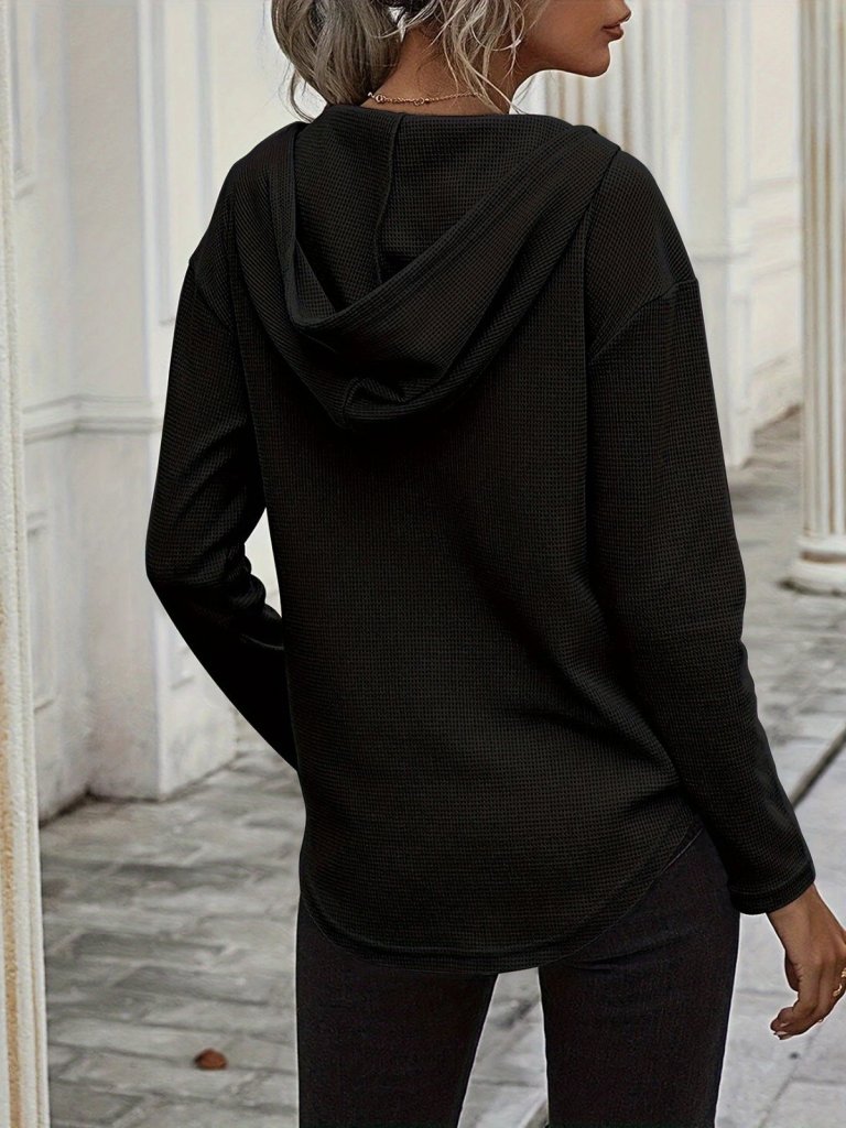 Kadın Uzun Kollu V Yakalı Kapşonlu Waffle Bluz