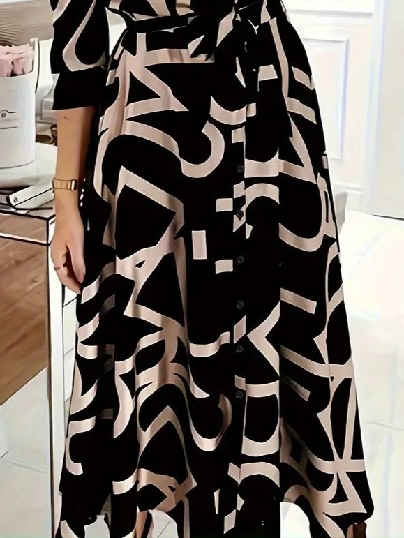 Kadın Uzun Kollu Yakalı önden Düğmeli Uzun Süprem Elbise