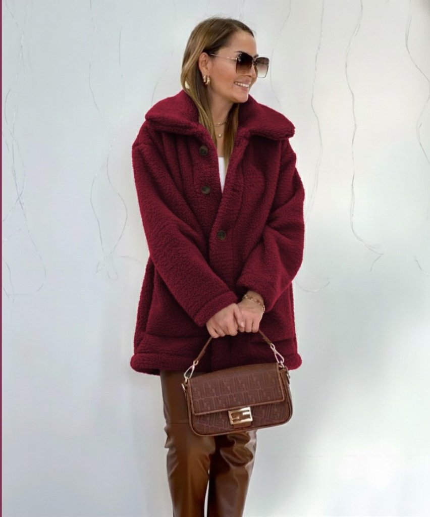 Kadın Uzun Kollu Yakalı önden Düğmeli Welsoft Kaban