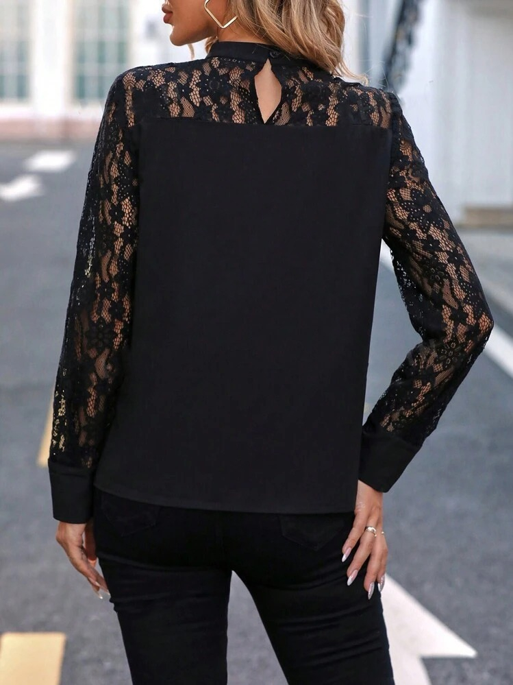 Kadın Uzun Kollu Yarı Balıkçı Yaka Dantelli Sandy Bluz