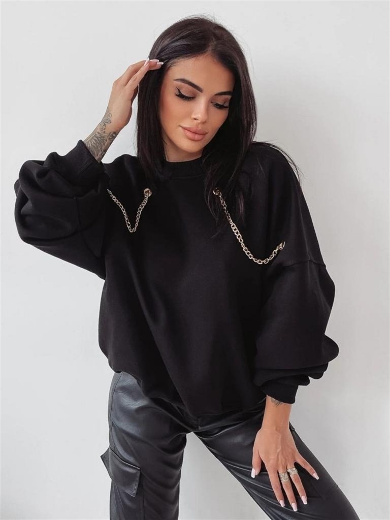 Kadın Uzun Kollu Zincir Detay Iki Iplik Bluz