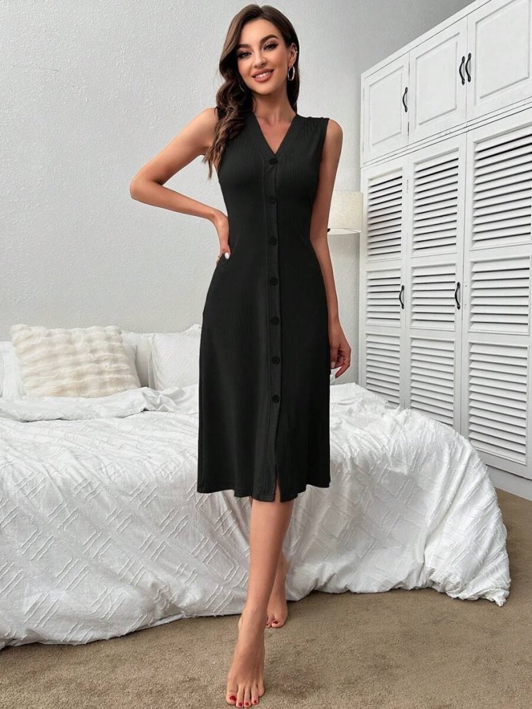 Kadın V Yakalı önden Düğmeli Kaşkorse Elbise