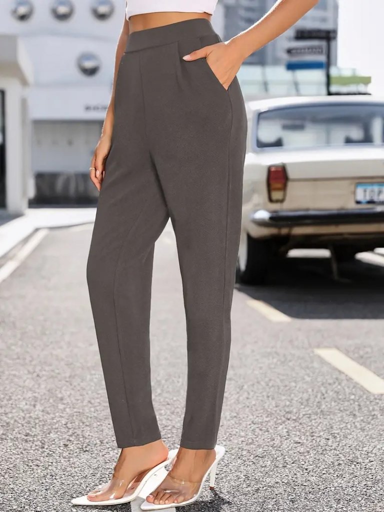 Kadın Yüksek Bel Cepli Rahat Kesim Ithal Krep Pantolon