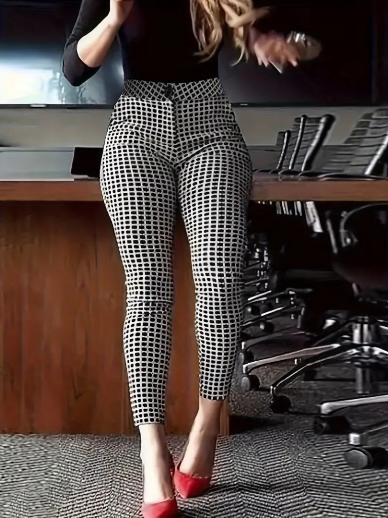 Kadın Yüksek Bel Desenli Dalgıç Pantolon