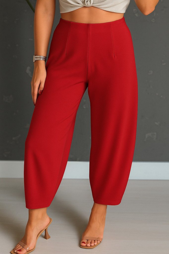 Kadın Yüksek Bel Krep Kumaş Bol Paça Pantolon