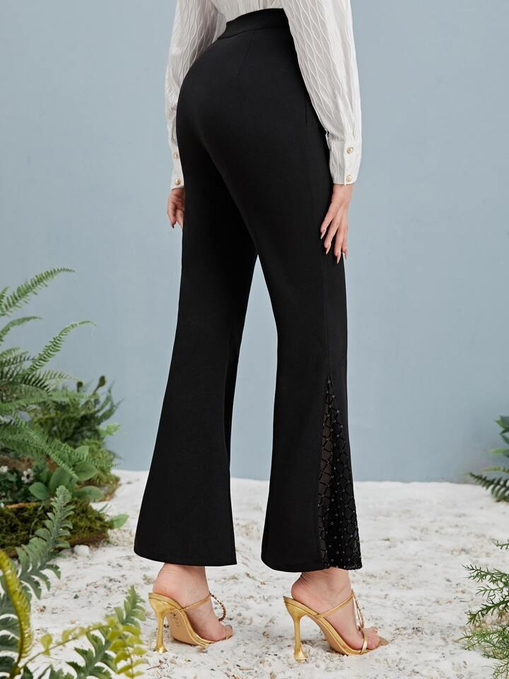 Kadın Yüksek Bel Yanları Tül Detaylı Dalgıç Tayt Pantolon