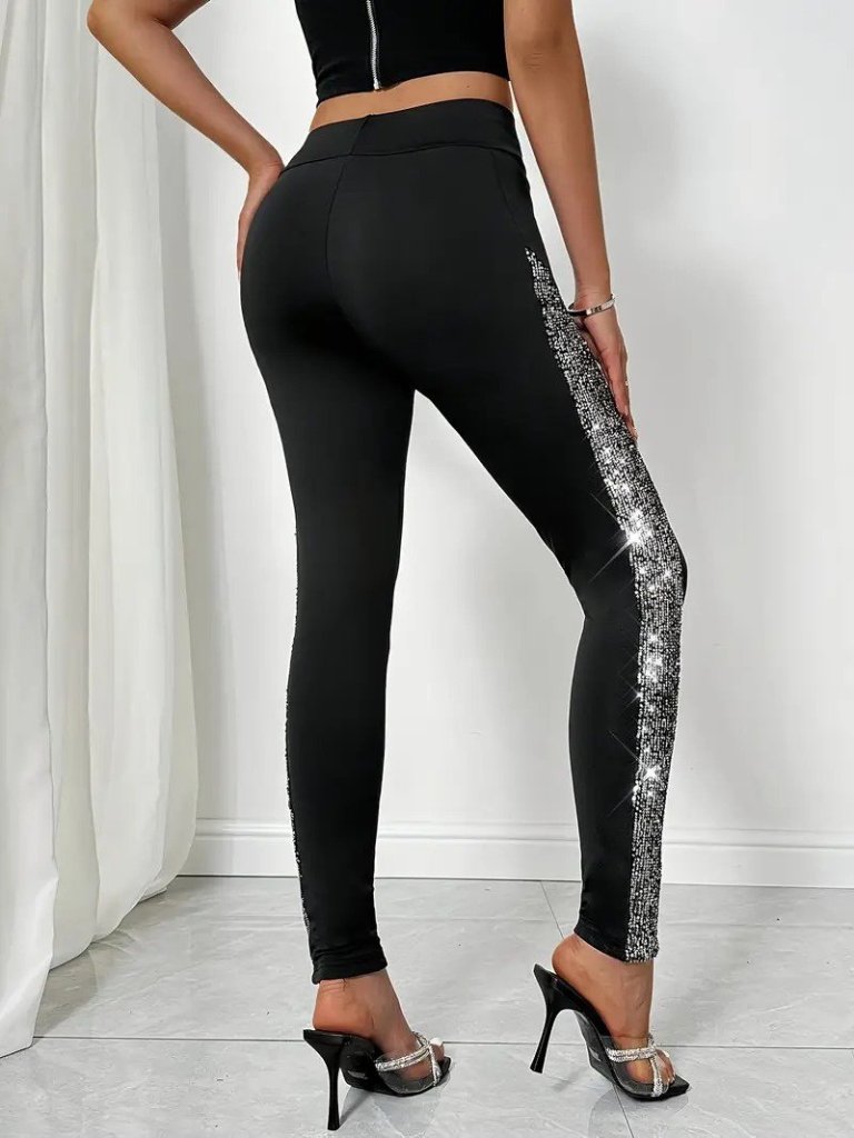 Kadın Yüksek Bel Yarı şerit Pul Payetli Dalgıç Tayt