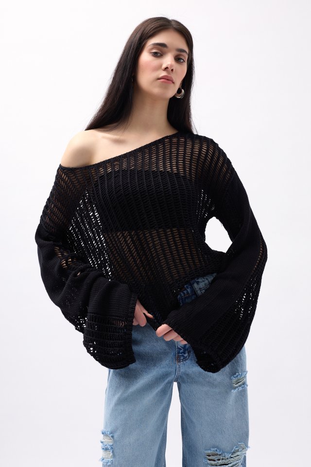 Kayık Yaka Ajurlu Bluz