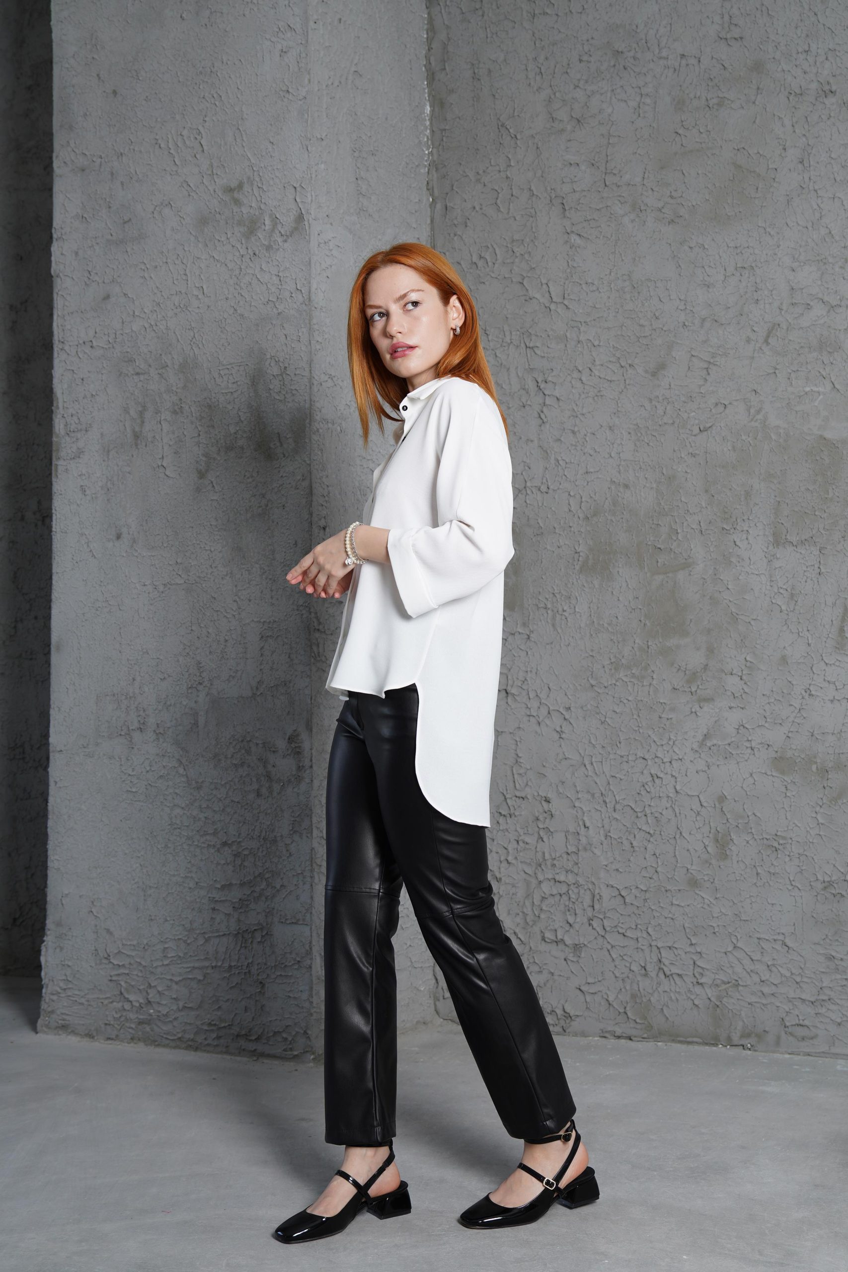 Kol Katlama Detaylı Beyaz Gömlek