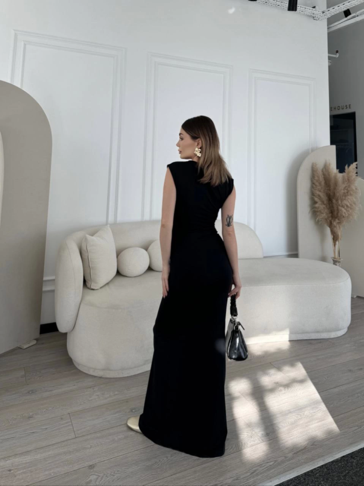 Kolsuz Uzun Likralı Elbise – Siyah