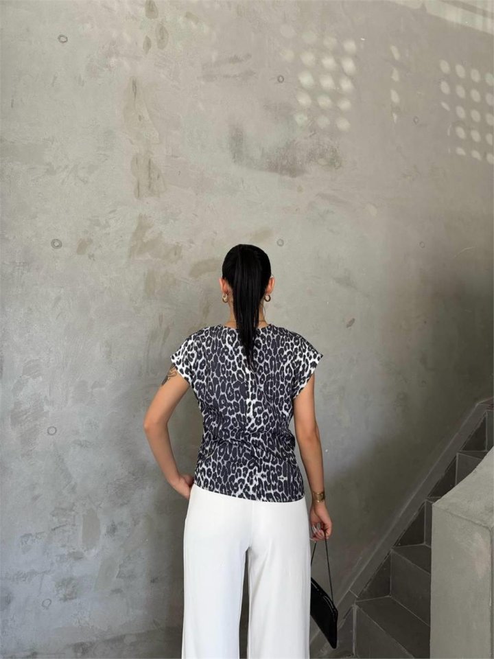 LEOPAR DESEN YANDAN BAĞLAMA DETAYLI BLUZ – Gri