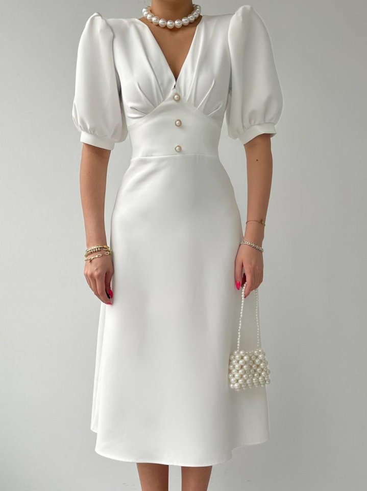 Kadın Uzun Kollu Halka Ve Pencere Dekolte Detay Fırsat ürün Midi Boy Elbise