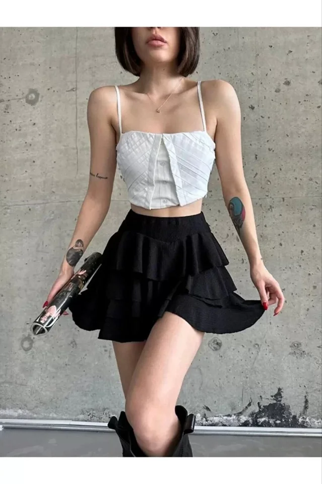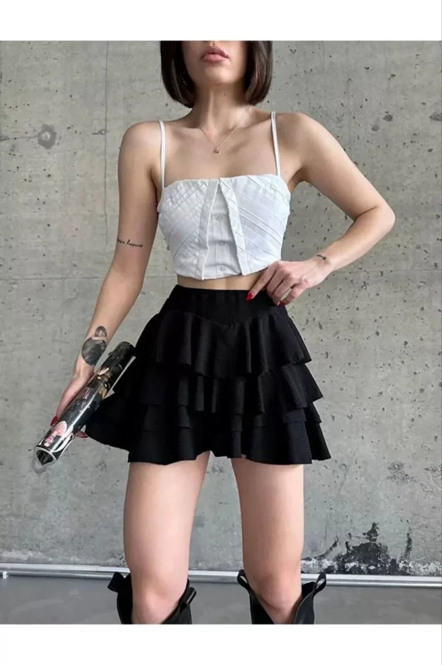 Beli Lastikli Baskılı Mini Şort - Beyaz
