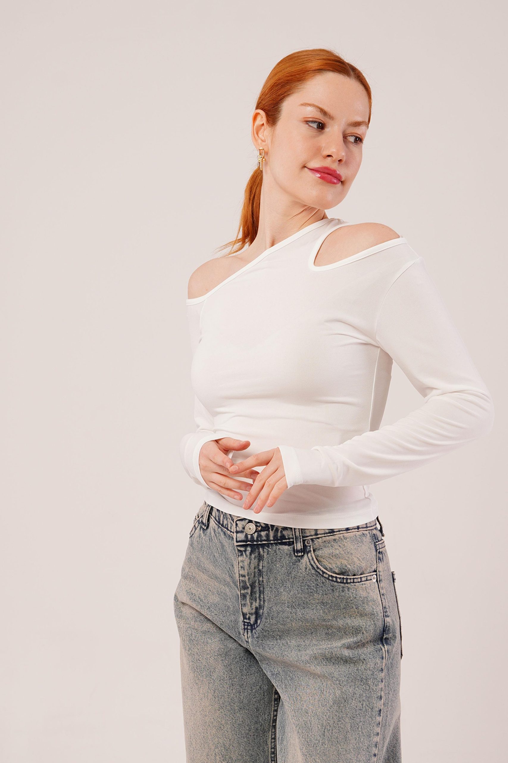 Kadın Kısa Kollu Bisiklet Yaka Kolları Gipeli Ithal Krep Bluz
