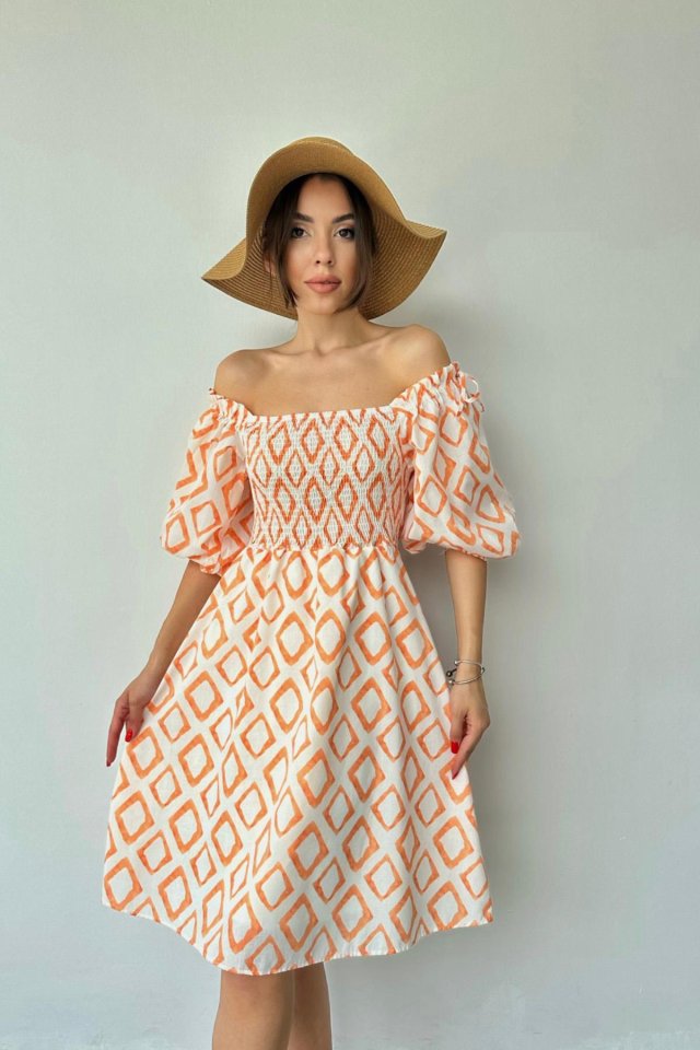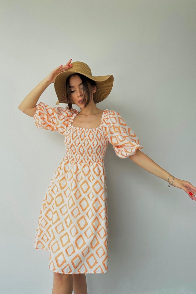 Oranj Kare Desenli Yazlık Elbise
