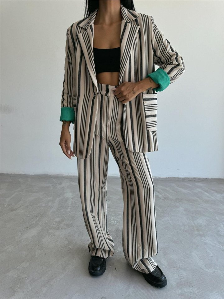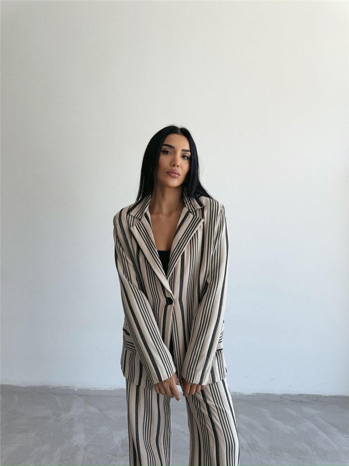 OTTOMAN ÇİZGİLİ CEKET-PANTOLON TK – Bej