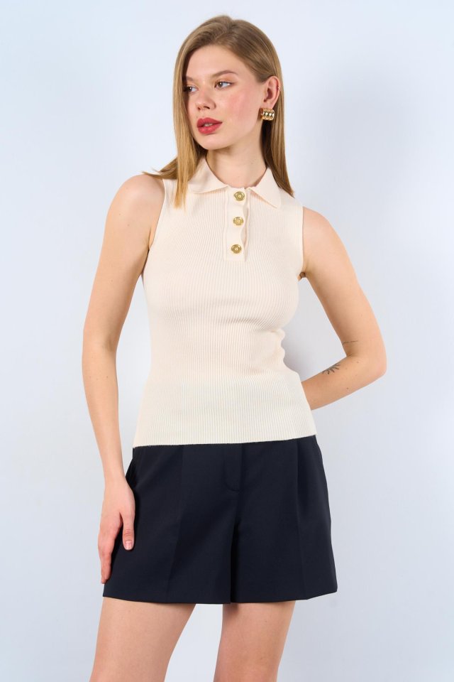 Patlı Düğmeli Triko Atlet – Beyaz Kayısı