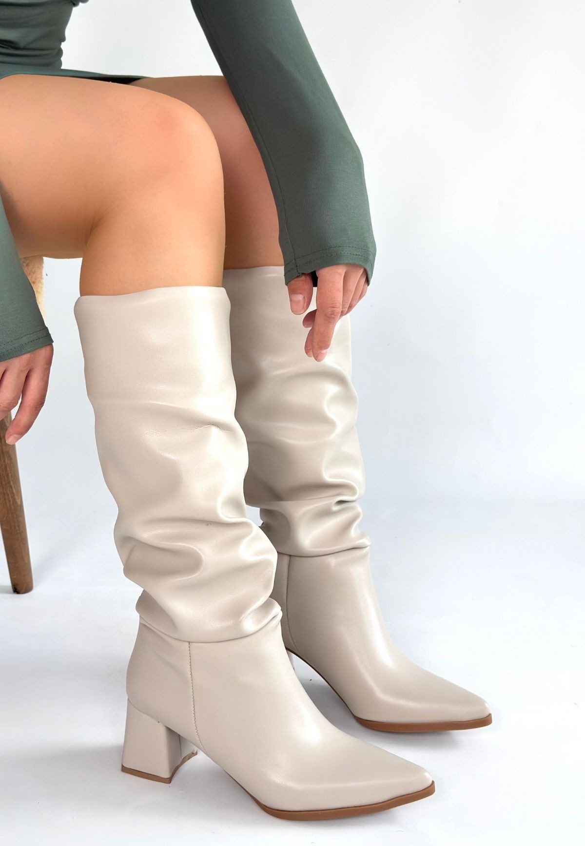 Detay: Topuklu Diz Altı Körüklü Çizme