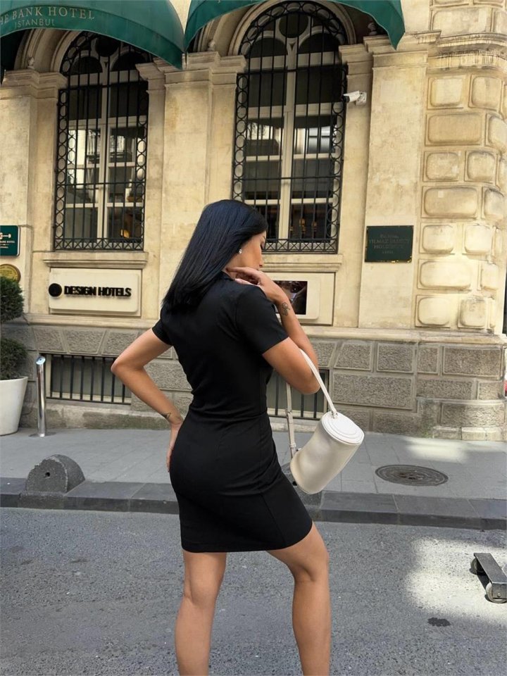 POLO YAKA YAKA KEMER DETAYLI KALEM ELBİSE – Siyah