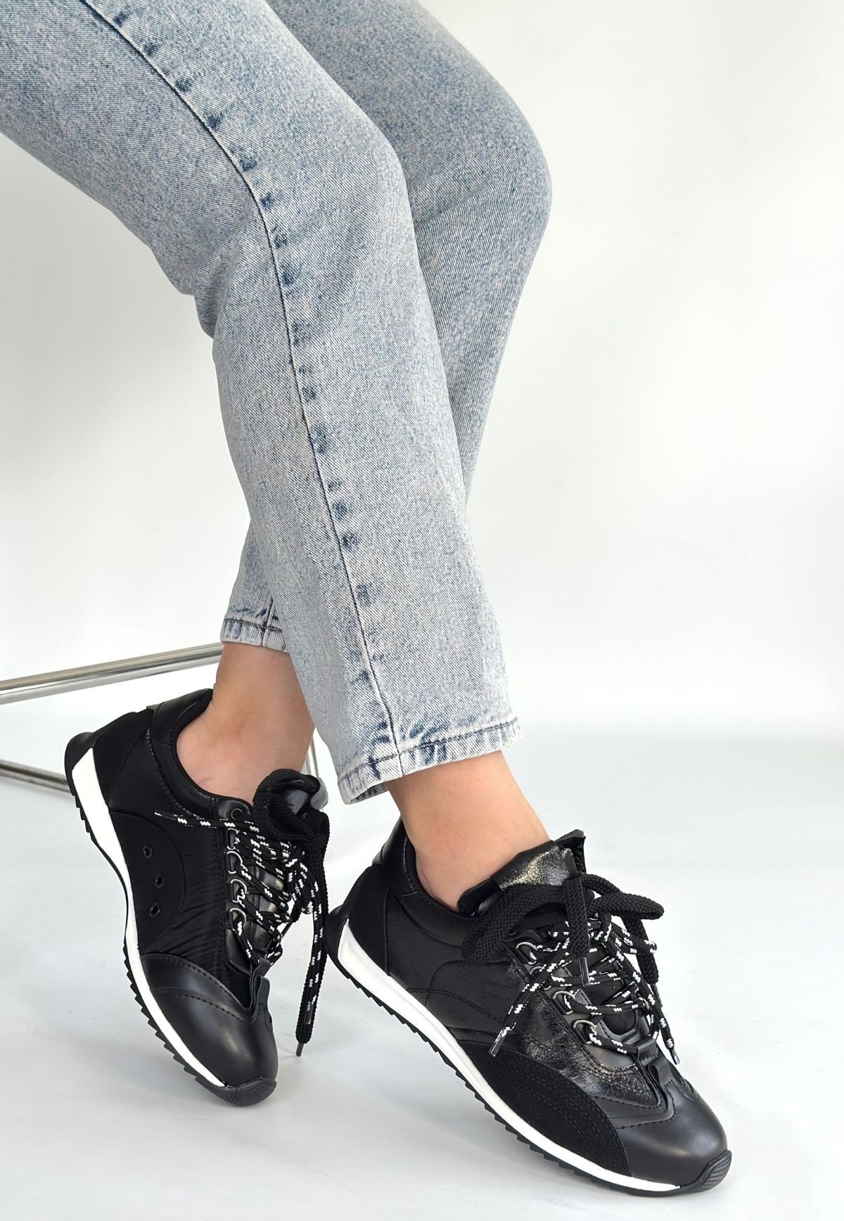 Ranu Siyah Cilt Paraşüt Detaylı Bağcıklı Spor Ayakkabı
