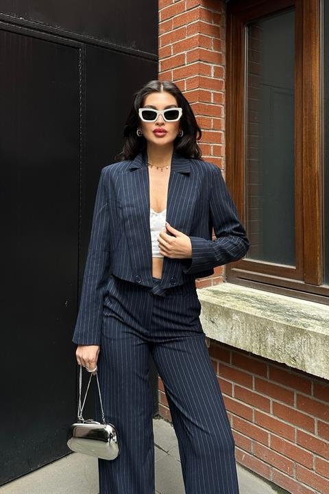 KISA KOL BAĞLAMA DETAYLI CEKET-PANTOLON TAKIM - Mor