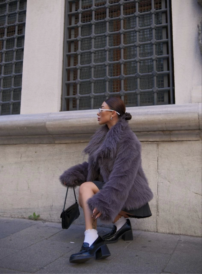 Salaş Sakallı Yumuşak Dokulu Yakalı Cepli Suni Kürk – Füme