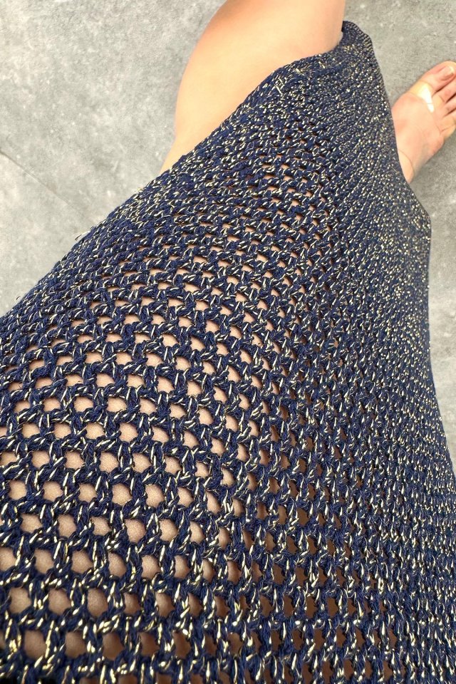 Simli Ajurlu Uzun Elbise – Lacivert-Sarı