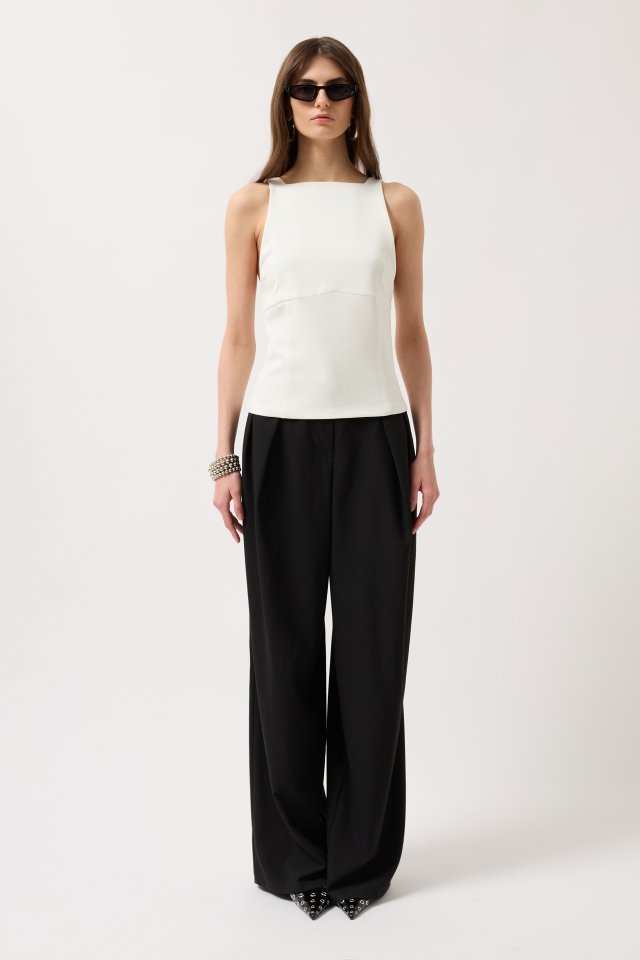 Kadın Yüksek Bel Krep Kumaş Bol Paça Pantolon