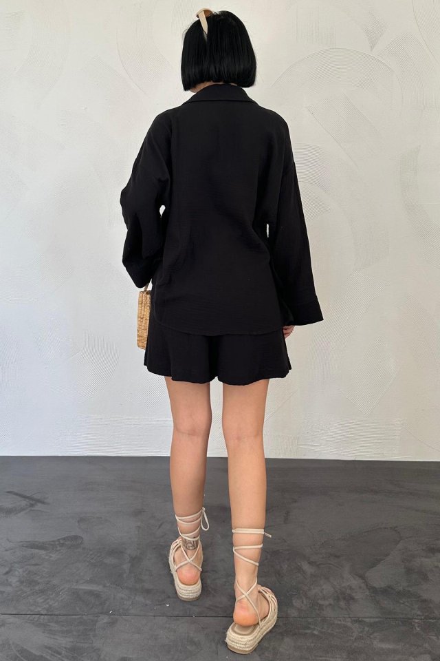 Crop Gömlekli Ve Eteği Büzgülü Tasarım Takım 10195