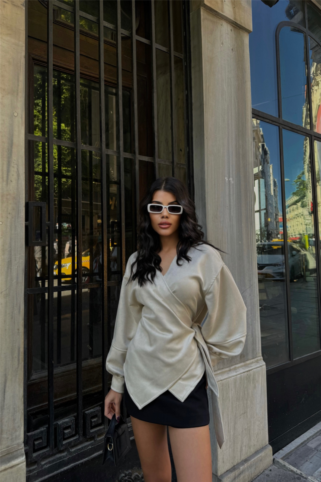 SÜET KRUVAZE BLUZ BAĞLAMA DETAYLI – Taş