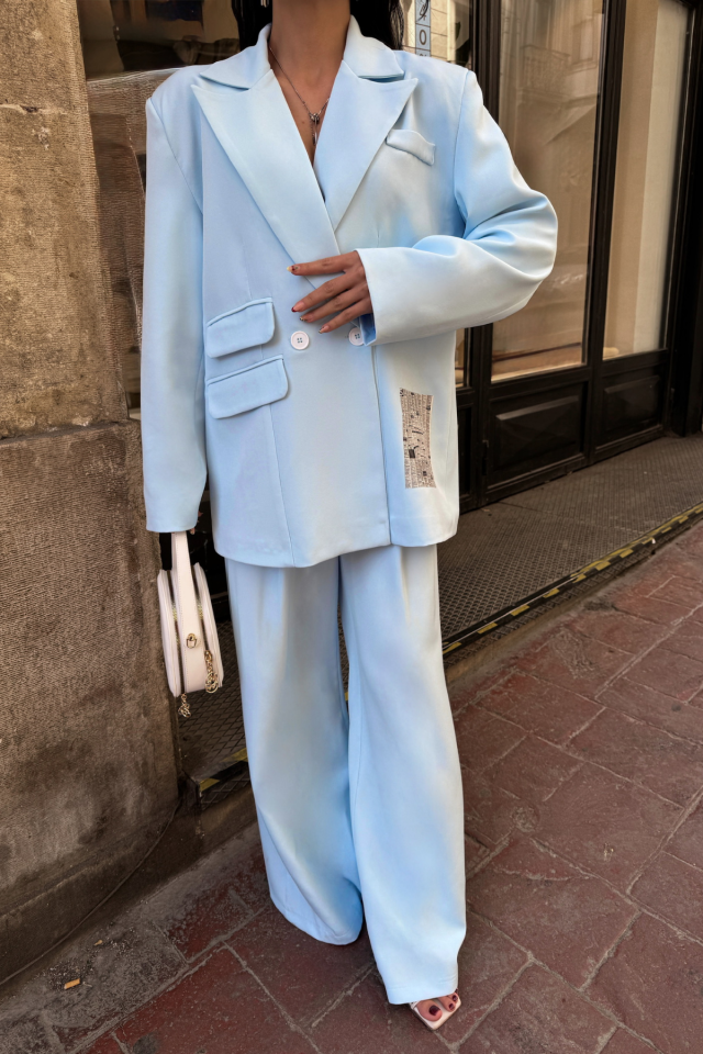 TASARIM ETİKET DETAYLI CEKET – PANTOLON TAKIM – Bebe Mavi
