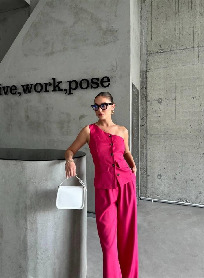 TEK KOL YELEK – PANTOLON TAKIM ATLAS – Fuşya
