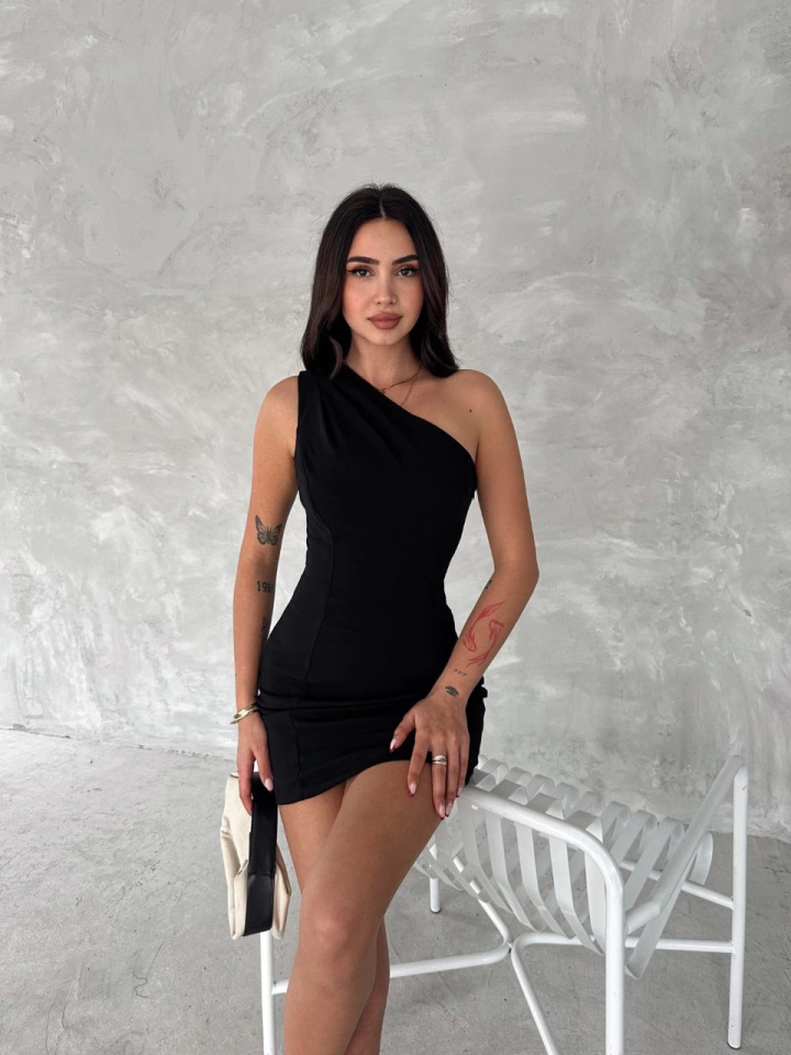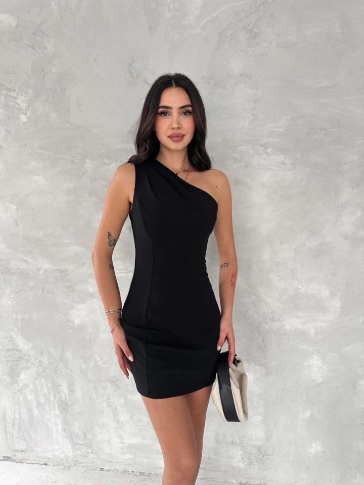 Tek Omuzlu Kolsuz Mini Boy Elbise – Siyah