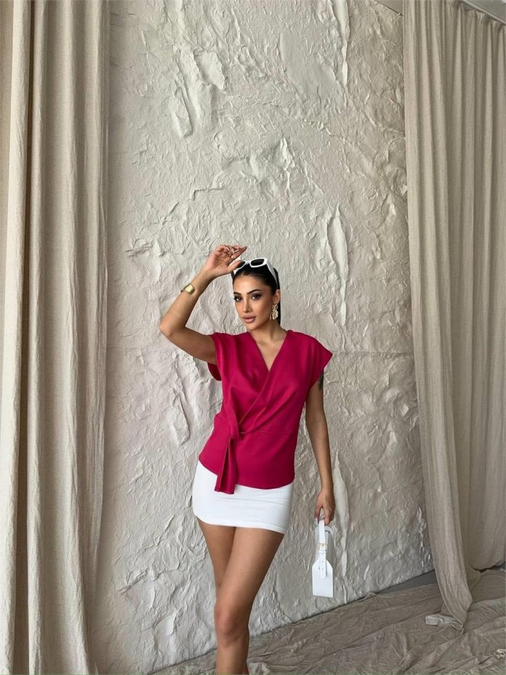 YANDAN BAĞLAMA DETAYLI KOLSUZ BLUZ – Fuşya