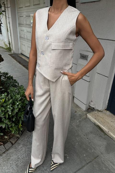 Yeleği Çapraz Detay Düğmeli Cepli Yelekli Takım 10150