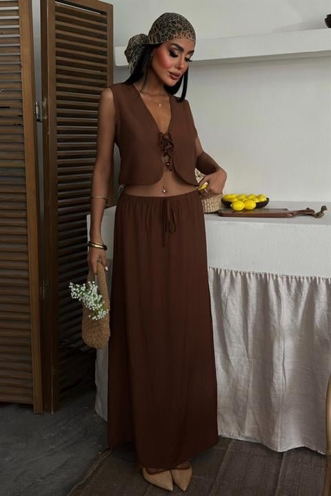 Yelek Önden Bağlamalı Uzun Etekli Takım 10192