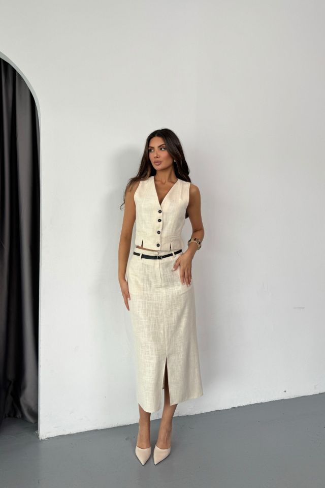 YELEK-ÖNDEN YIRTMAÇLI ETEK TK ŞANTUK KETEN – Ham