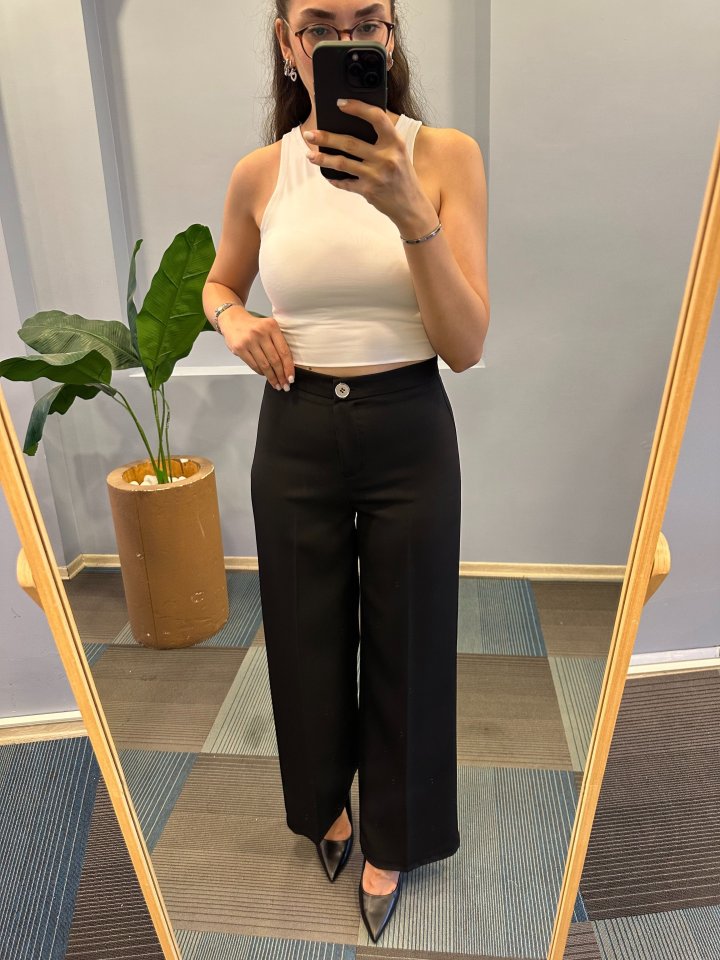 Yüksek Bel Palazzo Metal DüğmePantolon