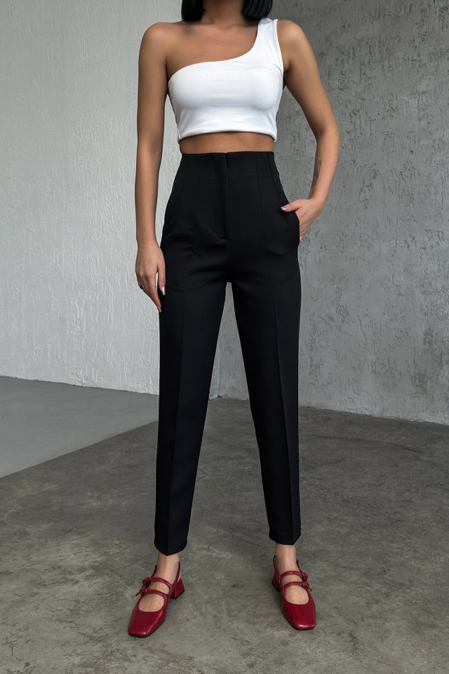 Kadın Uzun Kollu Bisiklet Yaka Viskon Iki Iplik Bluz Ve Pantolon Ikili Takım