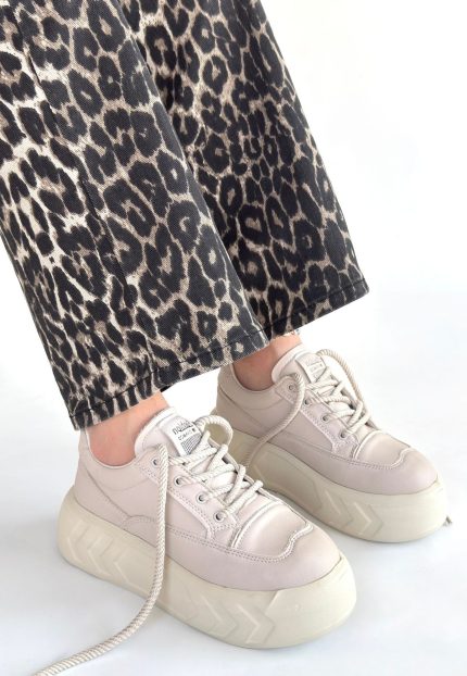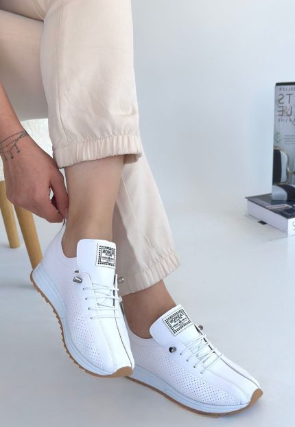 Zlay Beyaz Cilt Siyah Detaylı Bağcıklı Spor Ayakkabı