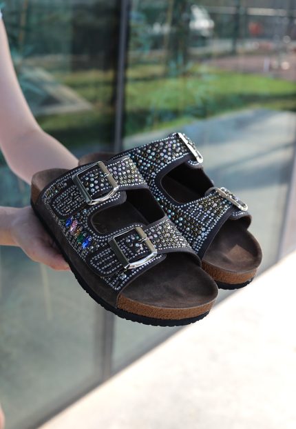 Edaj Siyah Nubuk Boncuk İşlemeli Terlik