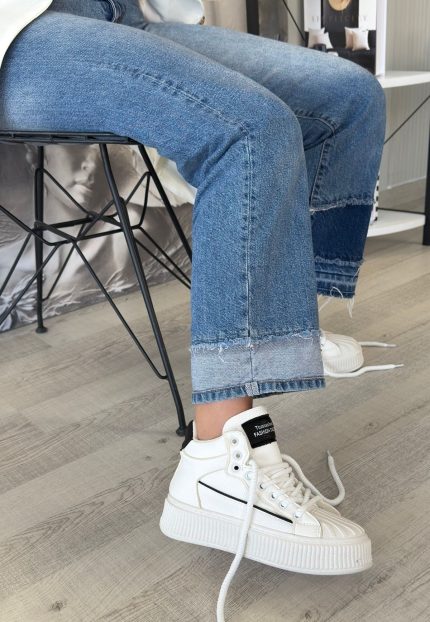 Estim Beyaz Cilt Siyah Detaylı Bağcıklı Spor Ayakkabı