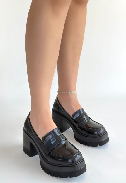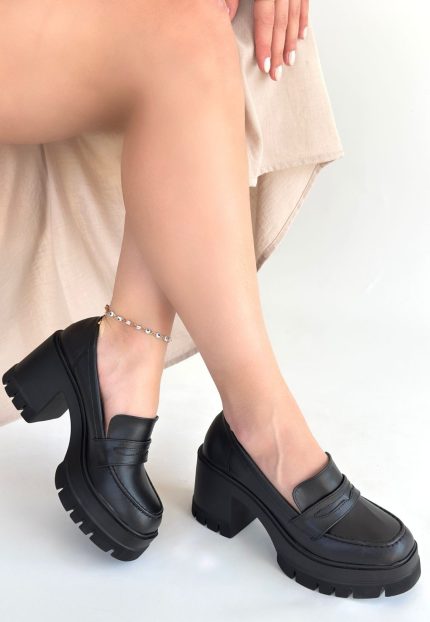Janes Siyah Cilt Dolgu Topuk Ayakkabı